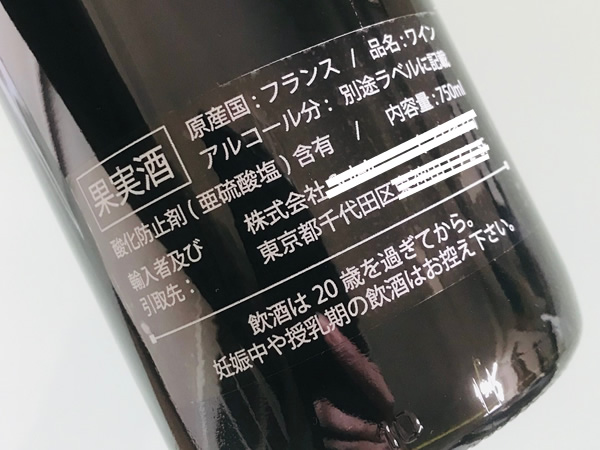 今回作成した裏ラベルは、フランスからワインを輸入するお客さん用です。 ボトルの裏には結構空いているスペースがあったので、いつもより少し大きめの寸法で作成しました。 ですので、行間もちょっと余裕がありますね。 普段はなるべく小さくラベルを作る事が多いのですが、スペースに余裕があるといつもとは違った雰囲気になります。 縦幅は、今回4CMあります。普段は3CMか、それ以下です。 この1CMがラベル作成時に大きな違いが出ます。 ちなみに今回は、透明背景・白文字印刷です。 この色味ですと、白ワインも赤ワインも使用出来るので使い勝手が良いです。 縦長の日本語裏ラベル シャンパン(スパークリングワイン)用の裏ラベル